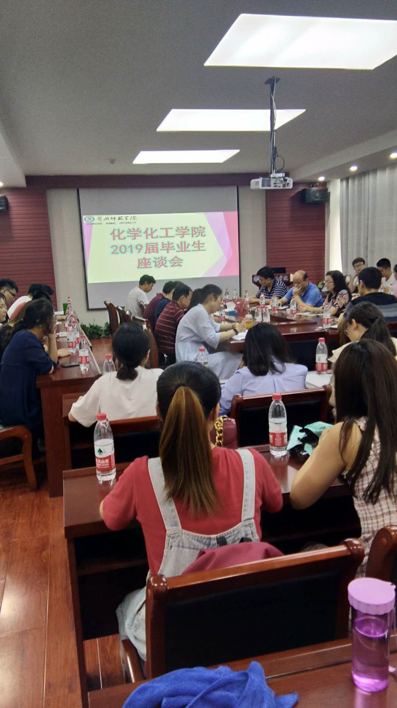 6月5日下午4点,我院在化工楼407举办了2019届毕业生座谈会。必赢线路检测中心党总支书记施向荣,必赢线路检测中心党总支副书记胡永红,副院长龙涛、张万举,及全体班主任与我院2019届部分毕业生代表进行了亲切友好的会谈。