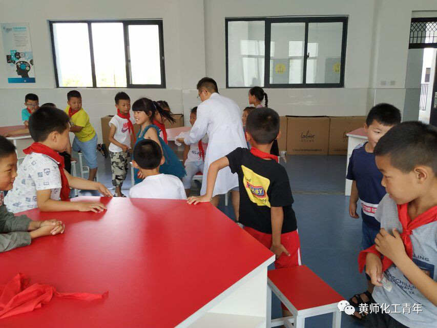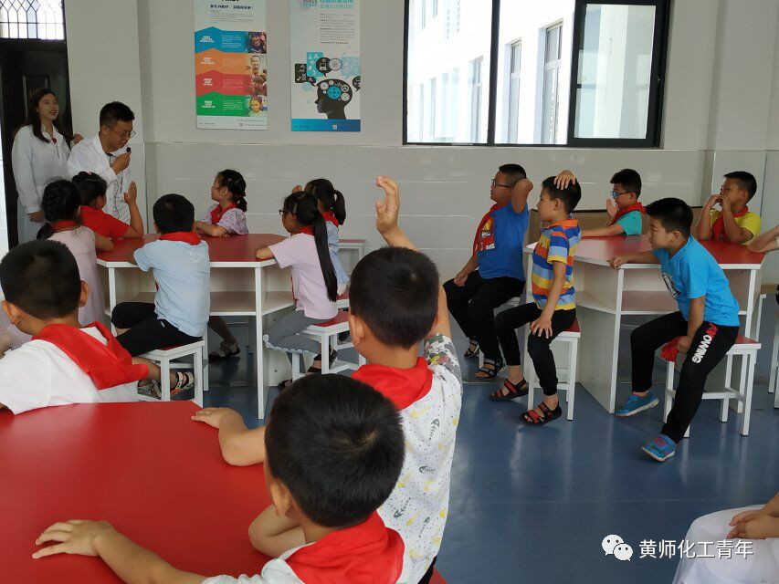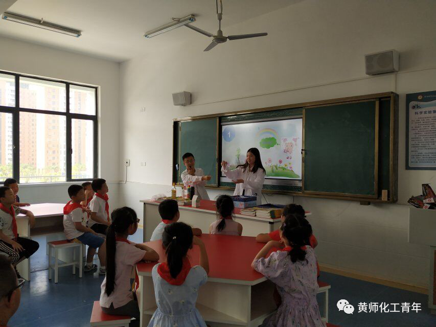 2019年6月24日上午,必赢线路检测中心“阳光化学公益团队”去到了黄冈市实验小学给一二年级的小孩子展示化学的魅力。本次出行的是学生会办公室主任张伟,以及部门成员郑雨朦,黄李理,卓颖,韦玲丽。带队老师是余杨老师和肖延亮老师。