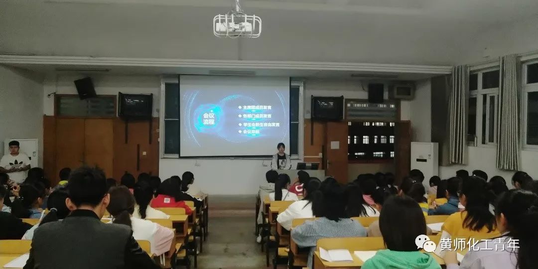 首先由学生会主席团成员发表讲话,告知新增部门以及到梦空间学分制度等重要事项。