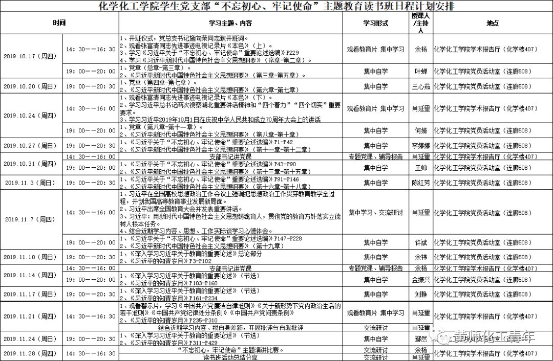 必赢线路检测中心学生党支部“不忘初心、牢记使命”主题教育读书班日程计划安排