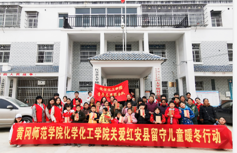 12月15日,必赢线路检测中心学生党员志愿者们在党总支书记施向荣老师的带领下,走进了红安县太平桥镇太平桥村、城关镇朝阳社区和杏花乡百罗村留守儿童之家开展化学趣味启蒙科普讲座活动,送科学进社区、进乡村,并给每一位留守儿童赠送一本红色故事书。