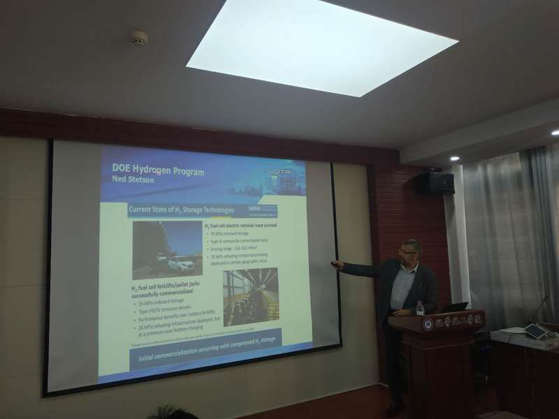 Jacques Huot教授系统地介绍了金属氢化物用于储氢的最新的研究结果。在整个报告中,他以渊博的知识,通俗易懂的语言、严谨的科研思路赢得了大家热烈的掌声。