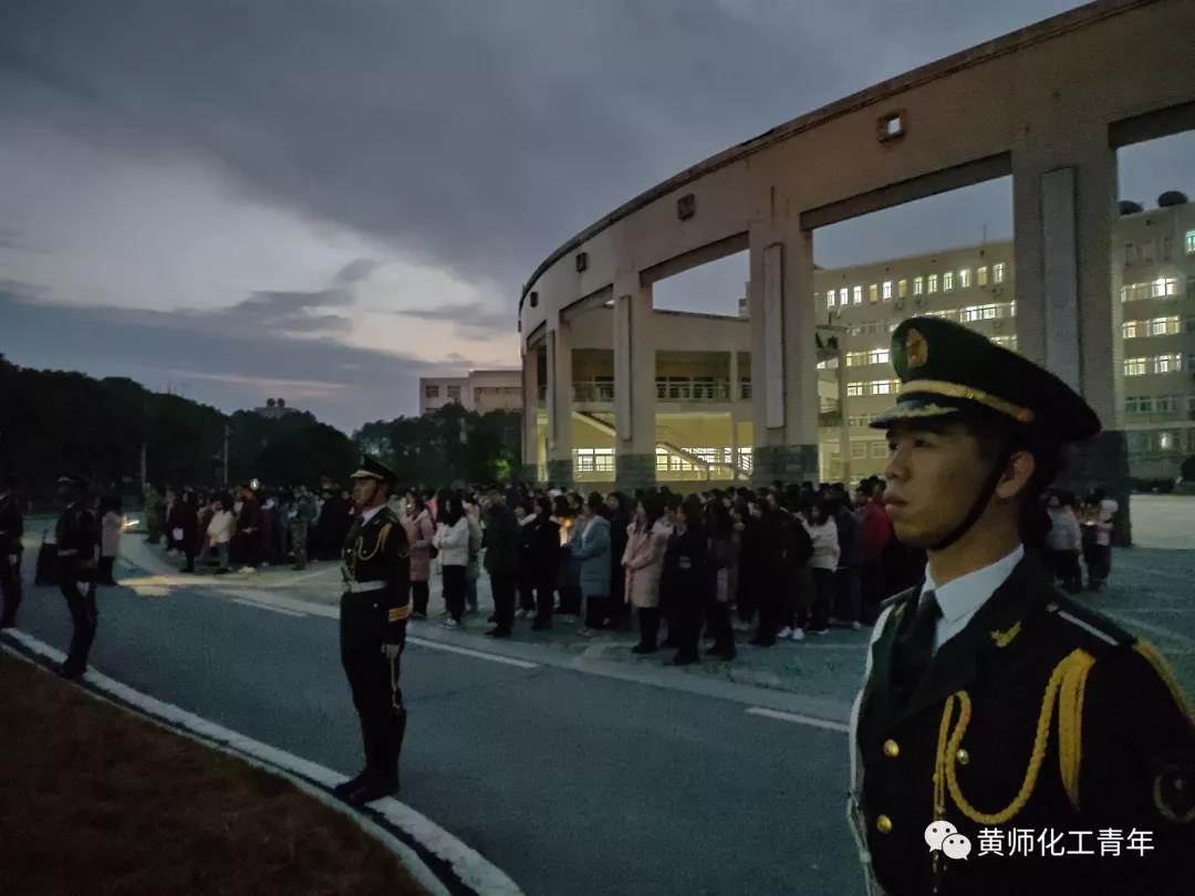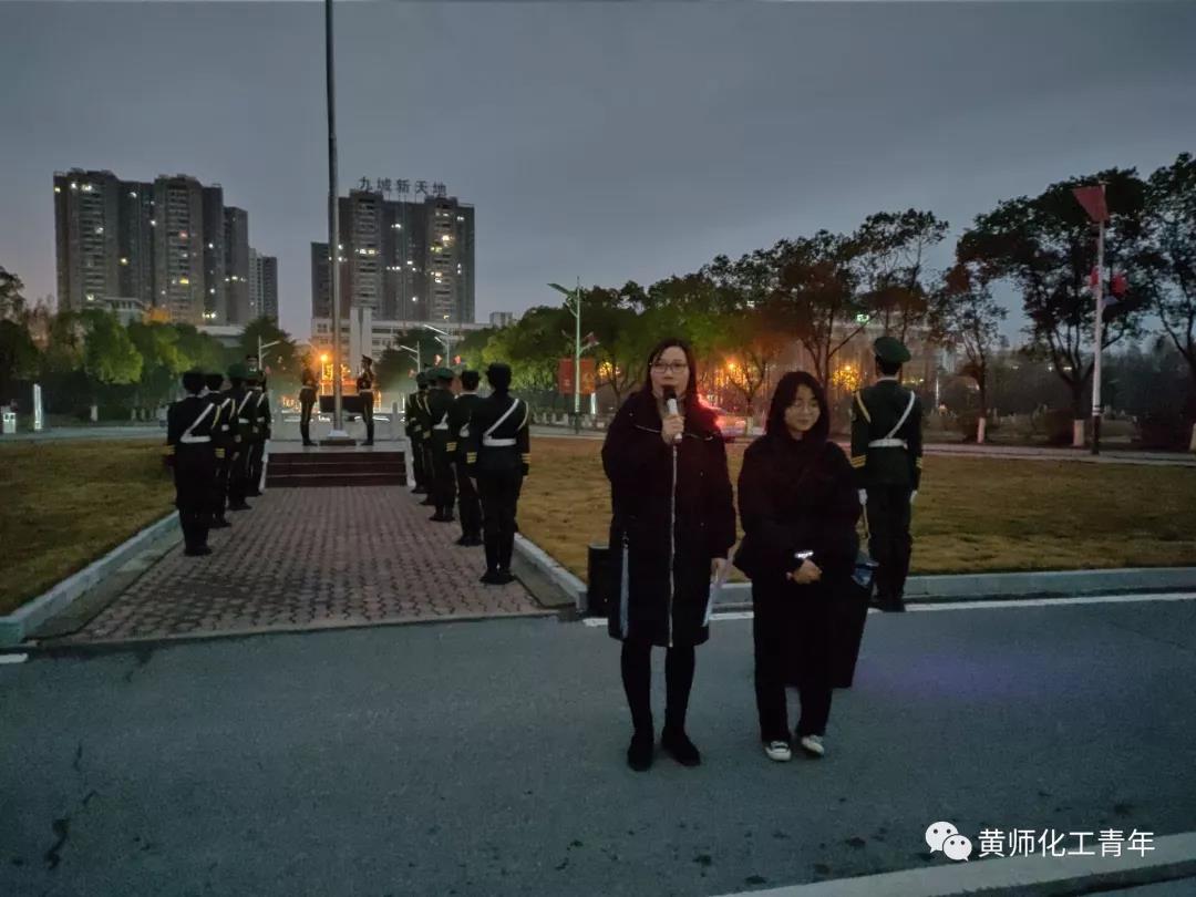 12月23日凌晨六点半,我院在博学楼前参加了庄严的升旗仪式,大一全体学生、学生会全体成员以及分团委书记余杨老师参加升旗仪式。