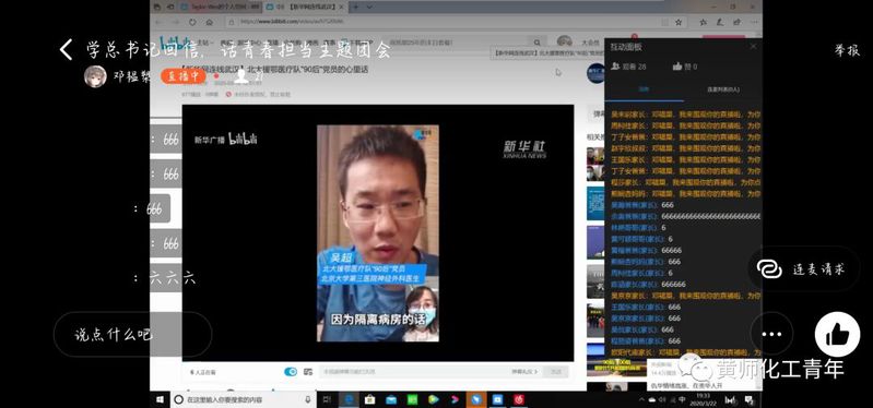 化学1901班的团会更加别致,团员代表们分别分享了疫情期间的所见所闻,结合自己的感受向大家介绍那些疫情间美丽的志愿者们和他们感人的事迹。