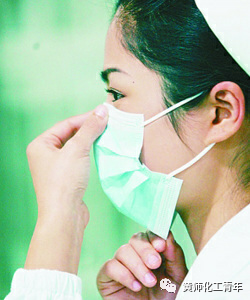 (2)正对脸部的应该是医用口罩的反面,也就是颜色比较浅的一面,除此之外,要注意带有金属条的部分应该在口罩的上方,不要戴反了。