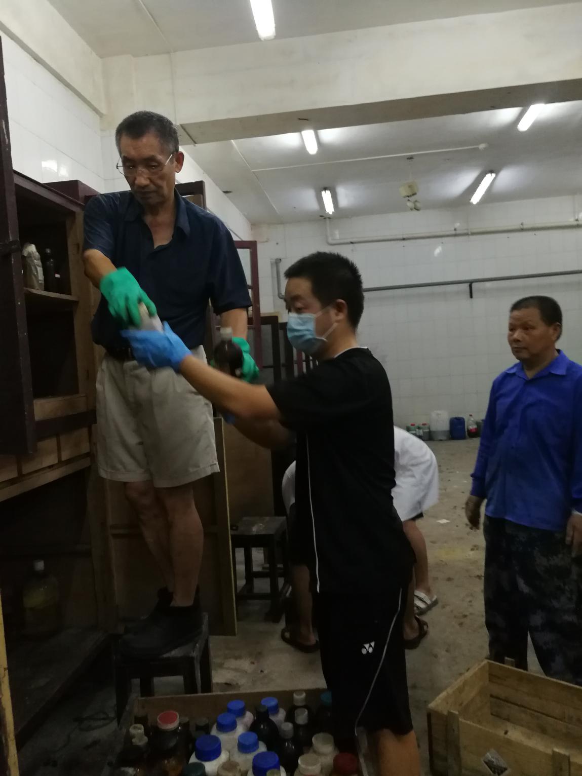 四小时的搬迁过程中,校领导王峰常委和教务处等领导亲临指导。11:00学院班子成员再一次去地下室地毯式地搜索一遍,确保没有半瓶危化品遗漏。刚刚搬完危化品,地下室就开始进水了。接着学院党总支部紧急召开总支委员扩大会议,研究部署学院抗洪抢险工作,高度重视地下室抽水情况,并明确规定从7月6日起实行24小时值班,每两小时一次巡查地下室。迅速排出值班表,强调抗洪抢险工作纪律。