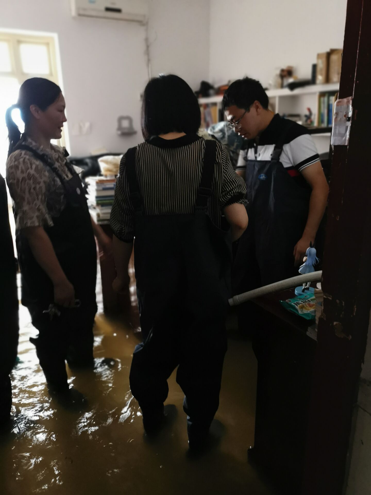 学校领导对我院的防汛工作十分关心,多次巡查指导一楼设备安全和地下室的防汛防护工作。