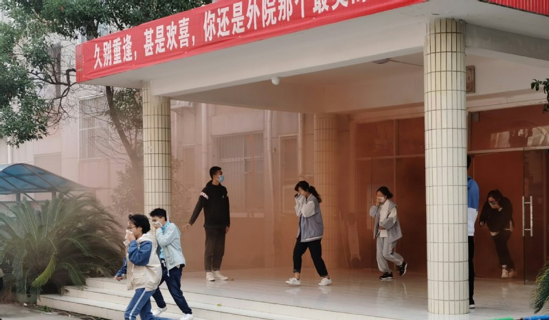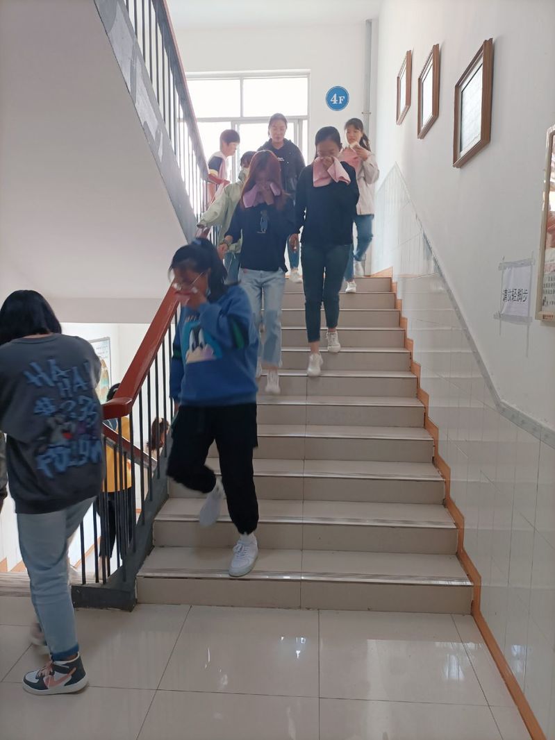 警报声响,同学们沉着冷静,用湿毛巾捂住口鼻, 听从楼内疏散人员的指令,弯腰有序地下楼, 疏散人员按照预先的消防演习方案疏散学生,保证楼内学生的安全,以免慌乱中出现拥挤或者踩伤学生现象。