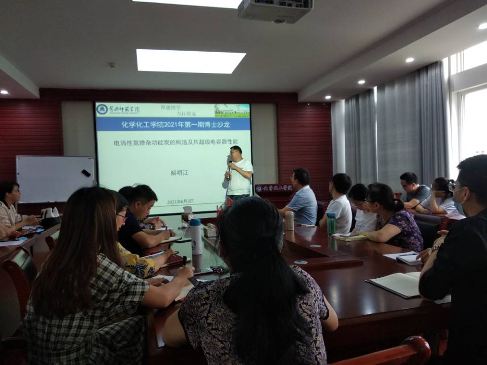博士沙龙活动由碳基能源材料学科团队做交流报告。解明江博士做了题目为“氮掺杂纳米炭的构筑及其超级电容器性能”的学术报告;万柳博士做了题目为“生物质衍生多孔碳材料的制备及其电化学性能研究” 的学术报告。报告的内容丰富精彩,博得老师和同学们一片片掌声。在现场提问与答疑环节中,与会师生就自身困惑、方向选择、科研创新等问题积极展开讨论,碰撞了思维火花、活跃了学术氛围,大家收获满满,并一致认为开展科研交流探讨,积极营造学术氛围,是学院为青年教师成长办实事,也是提升我院科研实力的重要措施。