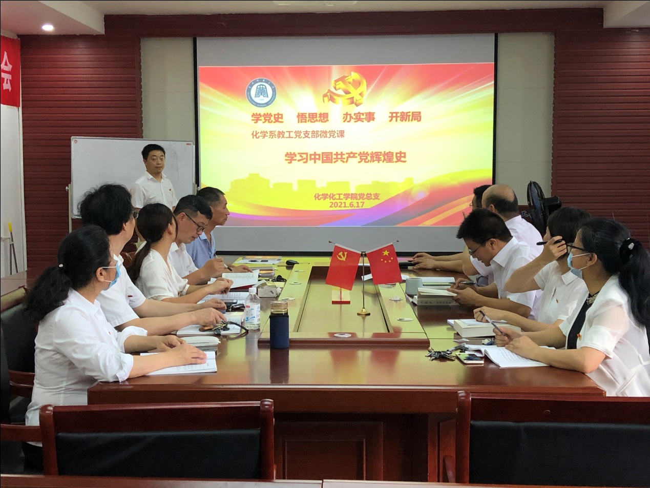 2021年6月17日,必赢线路检测中心化学系教工党支部书记阮志军同志在化学楼407为支部全体党员讲了题为《学习中国共产党辉煌史》的党史学习专题微党课。首先结合习近平总书记在党史学习教育大会和十九届五中全会的重要讲话精神,讲明了开展党史学习教育的重要性和必然性。然后按重大历史事件的时间顺序讲述了中国共产党一百年辉煌史的基本脉络。支部全体党员认真聆听,纷纷表示要高举习近平新时代中国特色社会主义思想伟大旗帜,增强“四个意识”,坚定“四个自信”,坚决做到“两个维护”。学党史,听党话,跟党走,为实现中华民族伟大复兴而努力。