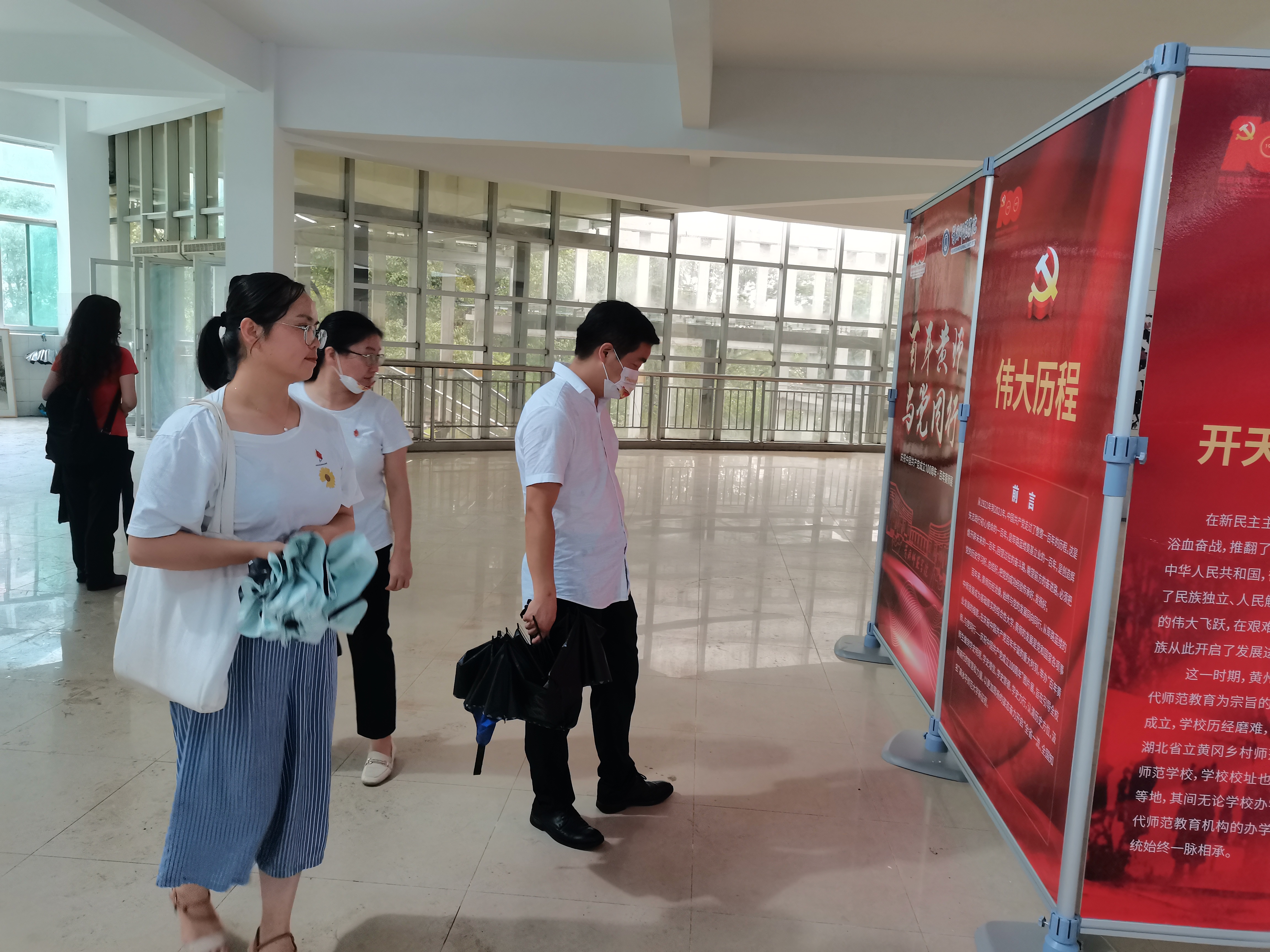 主题展共有“开天辟地 黄师初创”、“改天换地 黄师积淀”、“翻天覆地 黄师崛起”、“惊天动地 黄师奋进”四个篇章。一幅幅作品,一组组数据,记录着党和黄师的百年历史及辉煌成就,展现了党和学校百年来翻天覆地的变化。通过观看党和黄师百年的奋进历程,激发师生为学院和学校事业的发展奋勇前进。全体教职工及学生党员参加了本次活动。