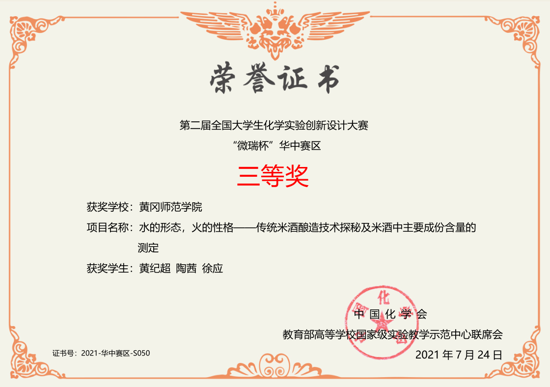 由教育部高等学校化学类专业教学指导委员会和高等学校国家级实验教学示范中心联席会主办的“微瑞杯”第二届全国大学生化学实验创新设计竞赛,分为东北、华北、华东、华中、西北、西南、华南共七个分赛区,首先进行初赛,然后再进行总决赛。其中华中赛区于2021年7月22日—24日在湖北省武汉市举行,由武汉大学化学与分子科学学院承办。
