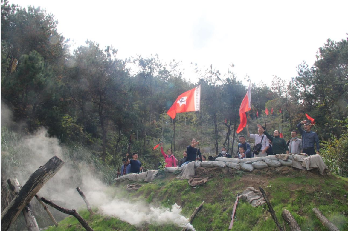 深秋的英山,层林尽染,缓缓流动的白莲河,仿佛诉说着革命历史变迁。上午10点,必赢线路检测中心教师党员到达英山大别山红色文化培训中心,在主讲人的安排下分成两队并领取相关装备,随后在主讲人的带领下进入长征精神体验园,重走一段长征路,用心体验革命精神,用行动传承红色文化基因。活动中党员们了解了大别山革命根据地的创建,重走了红二十五军艰辛的长征路,体验革命先烈不怕艰难险阻,勇往直前的革命理想和信念;参加牛背脊骨战斗、袁家沟口歼灭战等红军战斗,体会为了救国救民,不惜付出生命的牺牲精神;在红军之家唱红军歌,吃红军饭,忆苦思甜,感受今天美好生活的来之不易;在大别山革命历史文化陈列馆广场重温一次入党誓词,牢记初心使命,继续奋斗前进;在陈列馆听党课,学党史,悟初心,体会革命先辈奋斗历程的艰辛。通过近4小时的徒步行军体验,全体党员真切地体会到了大别山革命精神和长征精神之伟大,纷纷表示要坚守初心,在新的长征路上继续奋勇前进。