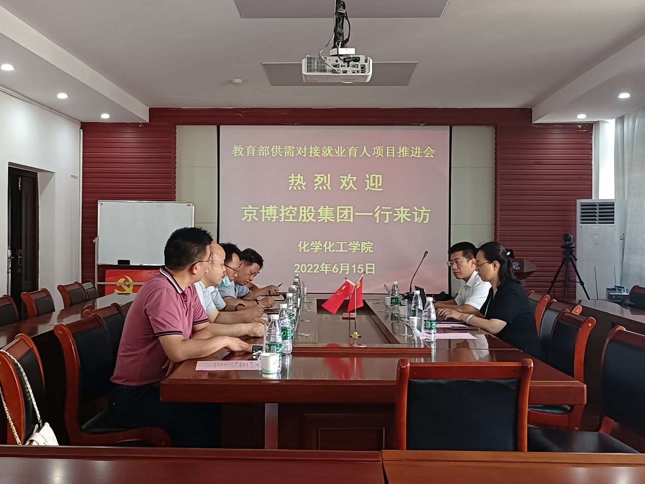 2022年6月15日,山东京博控股集团校企合作融创部部长魏登昱、校企合作融创经理李亚宁一行来访必赢线路检测中心,围绕共同推进教育部供需对接就业育人项目开展双向交流座谈。学校教务处副处长冯杰,学院党委书记邱浩、院长田正芳、党委副书记龙刚、副院长龙涛及化工专业负责人、项目负责人任丽敏参加会议。田正芳主持会议。