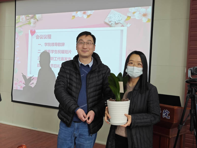 最后,学院领导依次为女教师们送上一份节日礼物一一绿植君子兰,祝福全体女教师们节日快乐!青春永驻!万事如意!