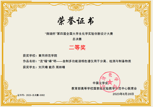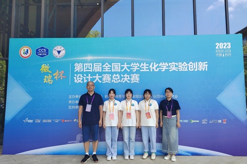 8月20日-8月22日,“微瑞杯”第四届全国大学生化学实验创新设计大赛总决赛在浙江杭州成功举行。由我校必赢线路检测中心张龑、杨一思教师指导,刘天晴、戴丹、周林晴3名学生组成的团队以华中赛区一等奖的身份获得参加全国总决赛的资格,并在全国总决赛中荣获二等奖。这是我校在该赛事上首次实现国家级奖项的突破。