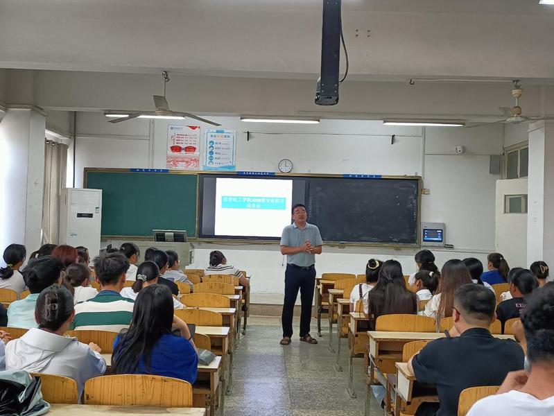进一步做好2020级的专业实习工作,提升化工、制药、应化专业的人才培养质量,确保2023年专业实习工作的顺利开展。9月15日下午,我院在博学楼310召开2023年度秋季专业实习动员大会。会议由副院长龙涛主持,全体20级化工、制药、应化专业的学生和实习指导老师参加会议。