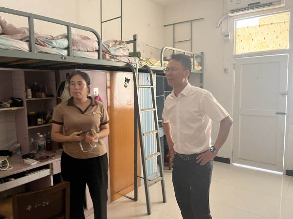 为更好了解2023级新生到校后生活情况,9月10日,必赢线路检测中心领导邱浩、田正芳、龙刚、蒋小春、新生辅导员以及新生班主任深入走访新生宿舍,为同学们送去关心与问候。