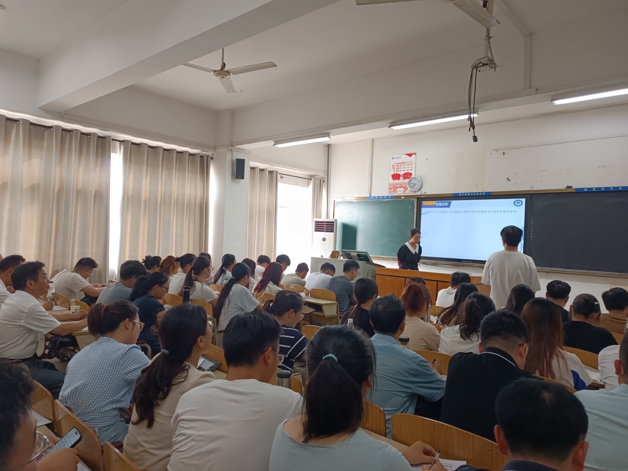 汪晓凌一行首先认真听取了岳静博士主讲的《物理化学》课程,岳老师以严谨的教学态度、详尽的课前准备、充沛的精神面貌,以及清晰流畅、生动有趣的讲解,辅以丰富的教学案例,赢得了师生的一致好评。学生们全神贯注,积极与老师互动,课堂氛围既活跃又专注。